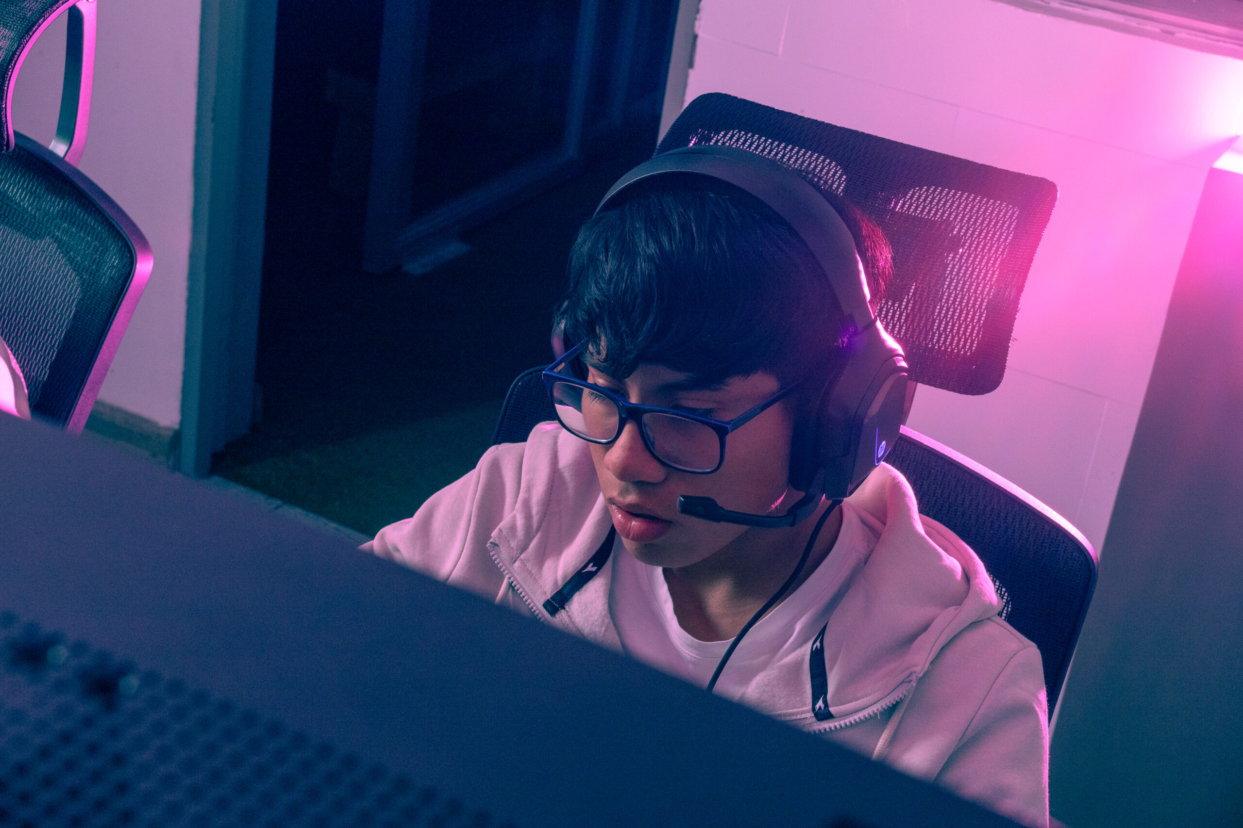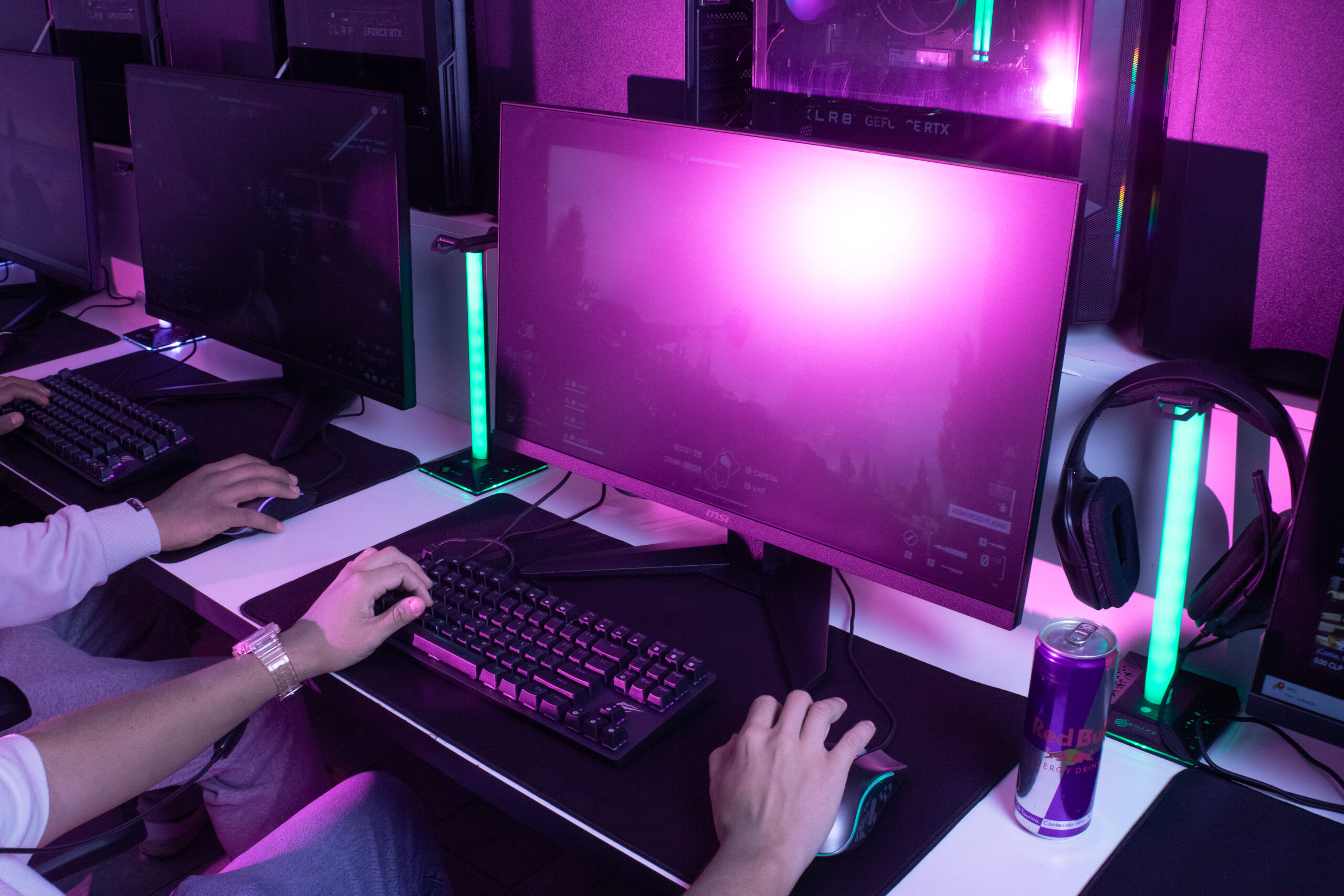 Sala compartida con 10 estaciones diseñadas para rendimiento competitivo, ideal para equipos, entrenamientos y maratones de juego.